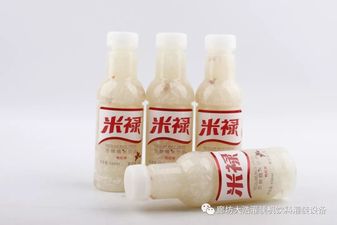 米祿產(chǎn)品是經(jīng)發(fā)酵后加米粒,混合均勻后灌裝,此設(shè)備為果粒和湯同時灌裝,該設(shè)備除洗瓶旋蓋外,在灌裝處經(jīng)過特殊設(shè)計,把加了顆粒的物料均勻的填充到瓶內(nèi),具有灌裝速度快,果粒均勻,灌裝液面平穩(wěn),灌裝閥的偏心設(shè)計,可做到滿口灌裝。